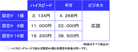 ●固定IPをご希望の方は、以下のコースからお選びいただけます。(限定コースのみ)